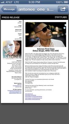 New digital release from Antonee "Who You Are" featuring first time ever Grammy Award Conductor Paul Buckmaster on strings, Lynval Golding from The UKs The Specials on Guitars,Very big production for reggae,from Hollywood LA.Which Antonee calls "an Adult Contemporary Reggae Song"