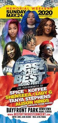 On Sunday, May 24th 2020, BOTB one of North America's largest Caribbean music festivals will welcome Billboard charting star renowned for her showmanship, Spice (Cool It, Genie, Sheet), young reggae sensation Koffee (Toast, Raggamuffin, Rapture), dancehall phenomenon Shenseea (Blessed, Lodi, Trending Gyal), legendary Tanya Stephens (These Streets, It's a Pity, You Nuh Ready Fi This Yet) trailblazer Lady G (Breeze Off, Nuff Respect) and popular soca Alison Hinds (Roll It Gal, Faluma, Thundah) to the stage of the Bicentennial Park in downtown Miami.