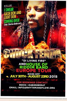 Veteran reggae artiste Chuck Fenda is set to kick off his Europe Tour on July 30th. The tour which is call 'DI LIVIN FIRE EUROPE TOUR will end on August 23, 2015.
