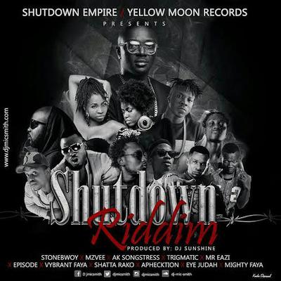 Two entertainment power houses Shut Down Empire (Ghana) and Yellow Moon Records (Jamaica) present the Shut Down Riddim. Yellow Moon Records is a record owned by Dj Sunshine. She holds a prolific track record of producing hit riddims (instrumentals) for artists like the world boss Vybz Kartel, Movado, I Octane, Alkaline, etc.