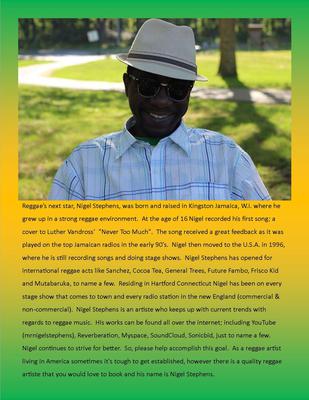 Reggae artiste Nigel Stephens - A new reggae star, Nigel Stephens is on the rise. Check him out massive.